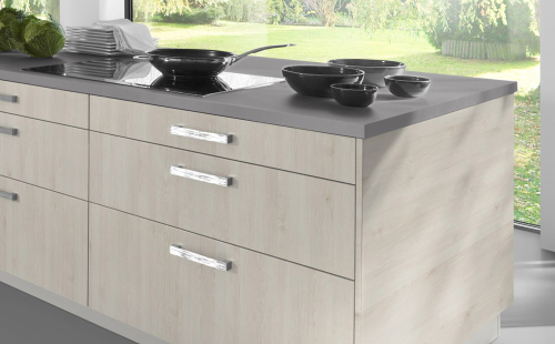 Арктика серый – нейтральный оттенок серого с долей голубого. В сочетании с древесными репродукциями он создаёт сильный, холодный контраст. Совместно с некоторыми репродукциями материалов, например, бетона, он подходит для оформления интерьера тон в тон. Бархатистая на ощупь структура ST9 Мягкий матовый подчёркивает нейтральный характер декора.