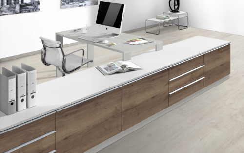 Филвуд - сочетание различных материалов по цвету. В структуре из серии "Синхронные поры" в настоящее время можно выполнить плиты ДСП, МДФ, компакт-плиты и бумажно-слоистые пластики. В качестве завершающего аккорда мы предлагаем кромку АБС, на вид и на ощупь напоминающую пиломатериал.