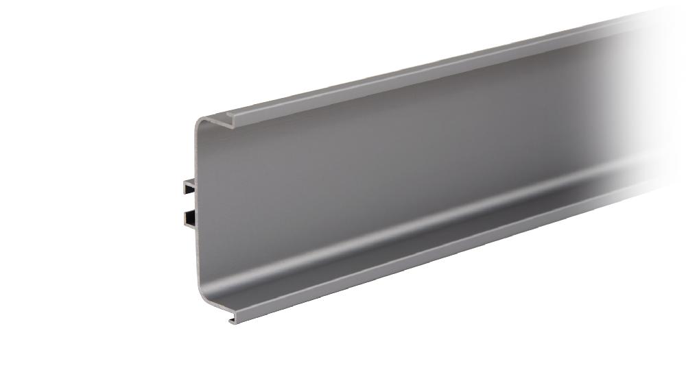RP050 — C-образный профиль GOLA BALANCE для фасадов второго и следующих рядов нижней базы мебельного гарнитура. Модель устанавливается между ящиками и позволяет захватывать как нижний, так и верхний фасады. Полезная длина RP050 составляет 4100 мм.