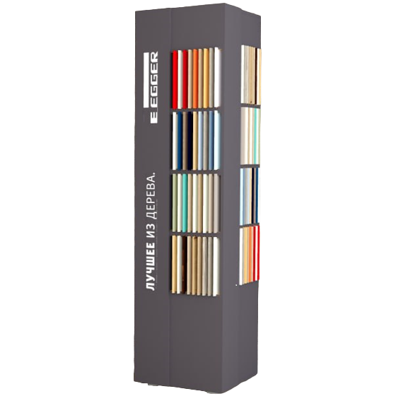 Стенд «Башня» — это демонстрационная конструкция для размещения образцов ЭГГЕР формата А4 толщиной 8 мм.