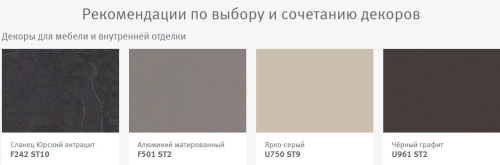 Эта уникальная репродукция древесины дуба очень хорошо подходит как для столешниц, так и для поверхностей столов или в качестве акцента. Зачастую в оформлении мебели для спален и гостиных рисунок торцевого распила древесины используется в качестве контраста к однотонным фасадам. С помощью репродукции Дуб Галифакс олово эта тенденция может получить дальнейшее развитие. Она предлагает новые оптические возможности в дизайне мебели. Наряду с однотонными декорами с этой репродукцией дуба очень хорошо сочетаются также декоры, имитирующие металл. Благодаря увеличенному раппорту в формате XL, то есть уменьшенному количеству повторяющихся трещин в рисунке декора, данная репродукция подходит для использования на больших площадях, а за счёт структуры ST37 Филвуд Рифт из серии «Синхронные поры» она становится идеальной на ощупь.