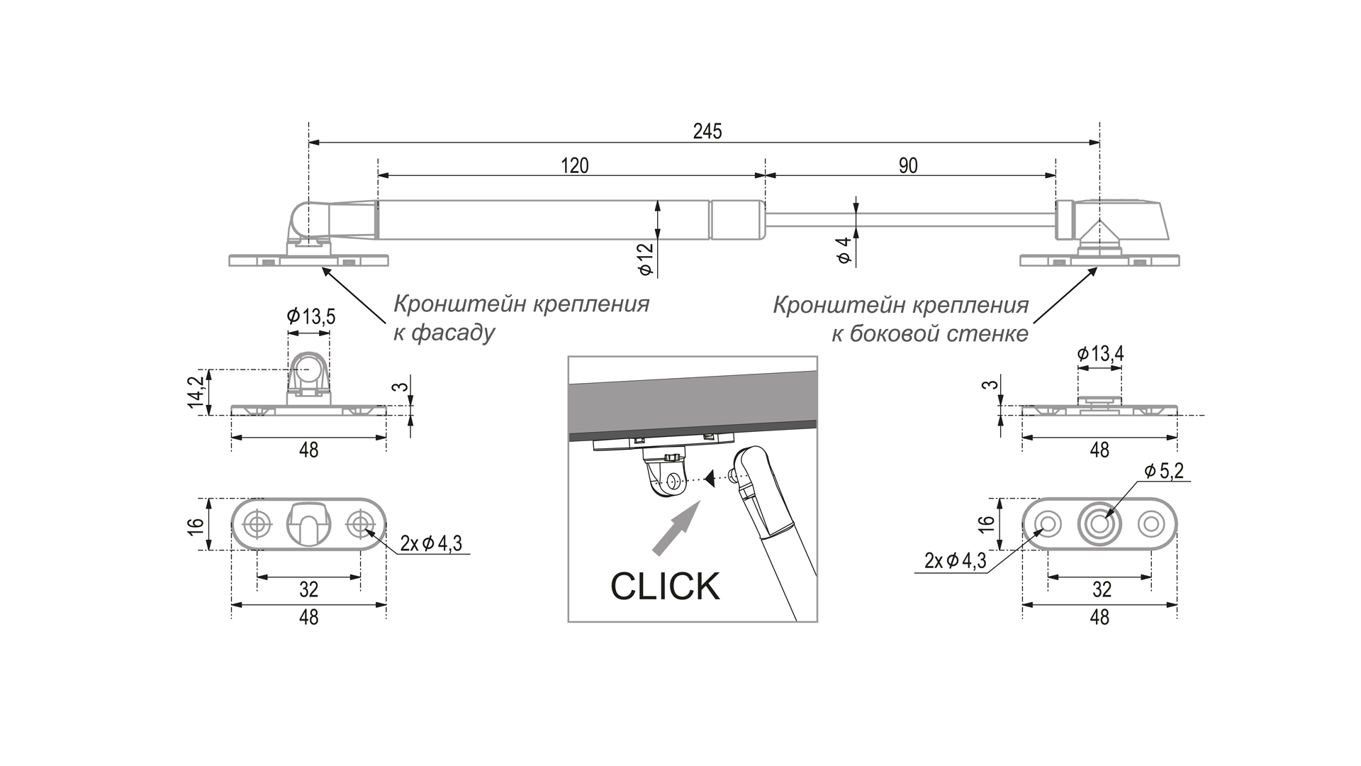 GL107 легко крепится к держателю фасада способом Clip-On — простым защёлкиванием. Декоративные заглушки в цвет газлифта (идут в комплекте) закроют крепёжные элементы и обеспечат завершённый, аккуратный вид.