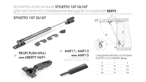 STYLETTO 107 GL107 — стильный фрикционный газовый лифт быстрого монтажа для открывания фасада вверх.