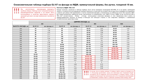 За счёт фрикционного механизма GL107 обеспечит фиксацию фасада в любой точке траектории движения. Регулировка угла открывания в диапазоне до 3° позволит выровнять фасад в открытом положении со смежными.