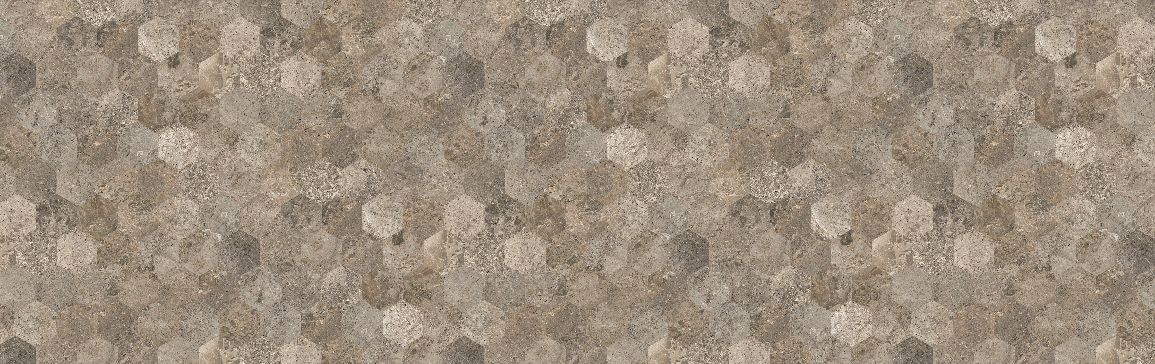 Основа Hexastone (Гекса каменный) — природный известняк, состоящий из мелких частиц разного цвета и тональности. Является истинным символом стабильности, долговечности и некой монументальности. Оформление в виде еле уловимого рисунка сот делает декор выразительным и ненавязчивым.