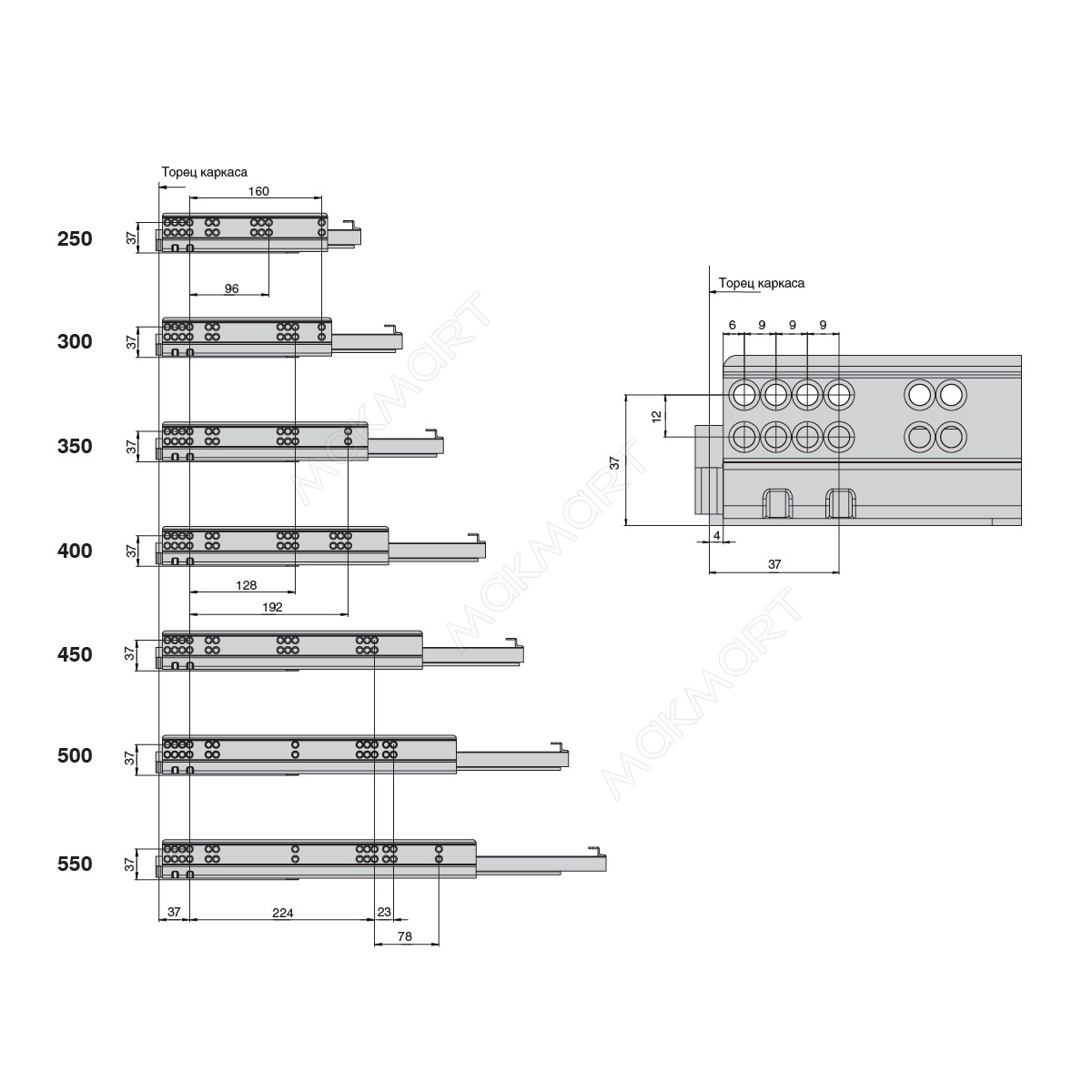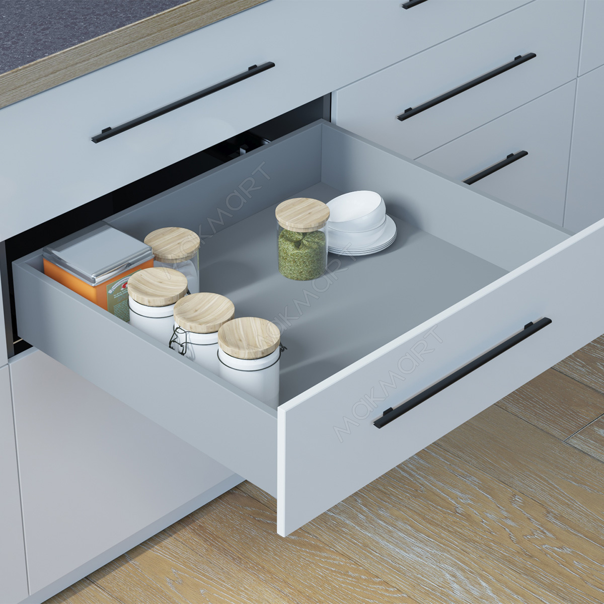 Обновлённая версия скрытых направляющих отличается высокой плавностью хода и превосходными кинематическими свойствами. Конструкция предусматривает наличие синхронизатора срабатывания механизма открывания push-open.