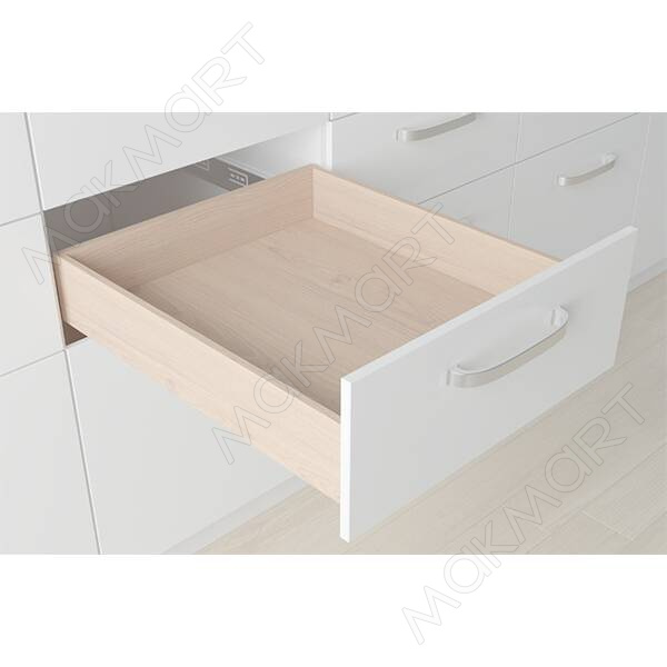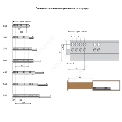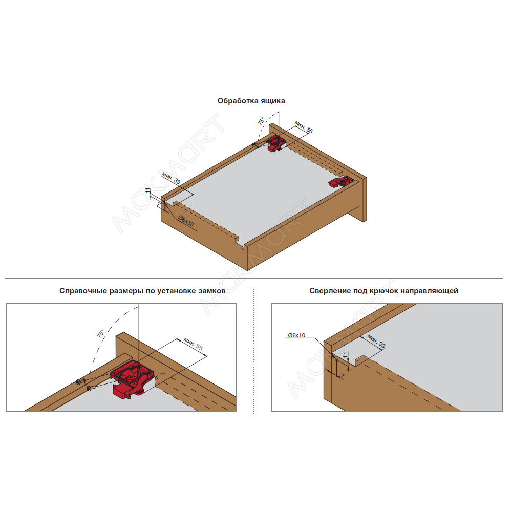 Повышена стабильность работы направляющих за счёт того, что механизм установлен на верхнем ходовом элементе, и он перемещается вместе с ящиком при открывании.