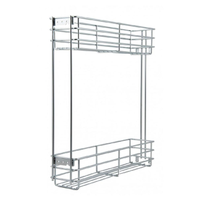 Компактная выдвижная корзина для рационального хранения бутылок и высоких ёмкостей на кухне. Рассчитана на установку в мебельные модули шириной 150 мм.
