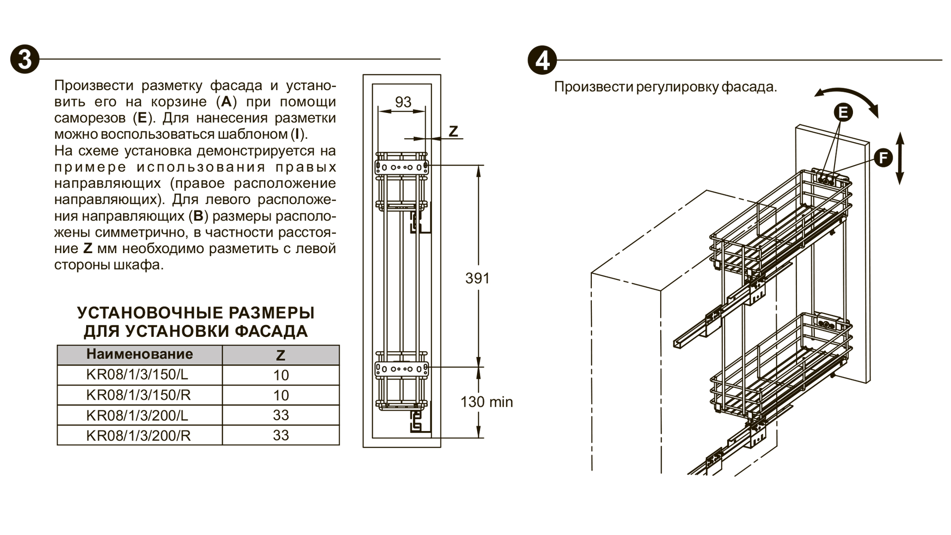 Регулировка фасада: в трёх плоскостях.