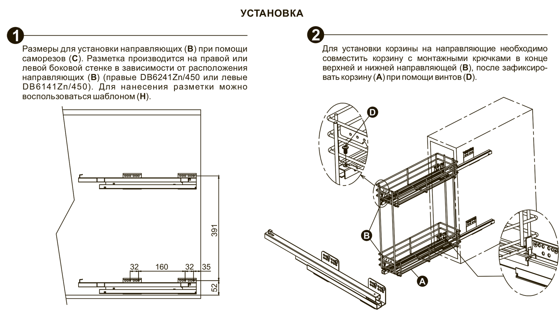 В поставку входит только корзина. Направляющие необходимо приобретать отдельно.