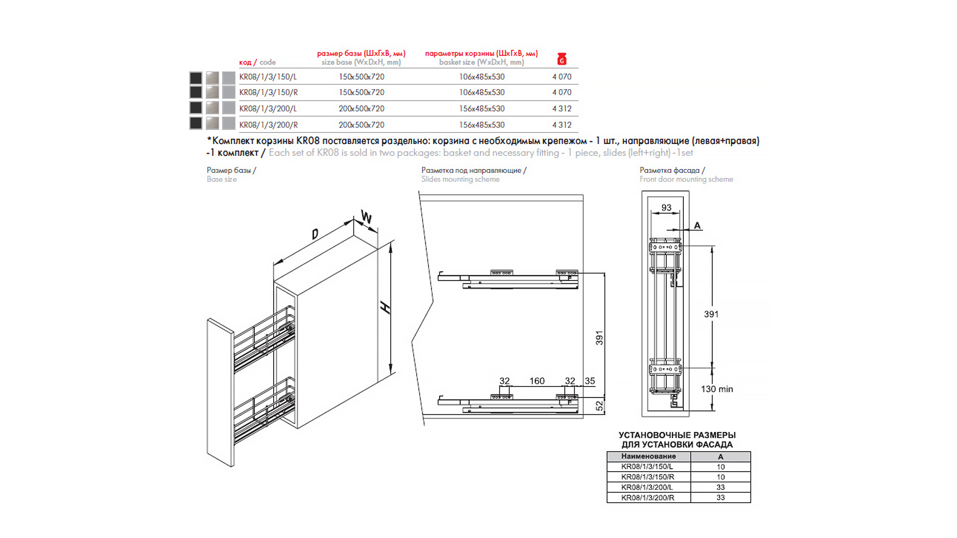 В поставку входит только корзина. Направляющие приобретаются отдельно.