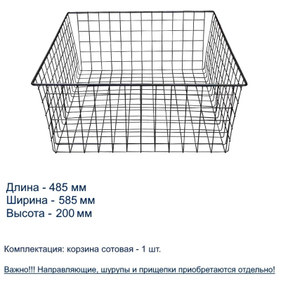 Корзина сотовая 585х485х200, черная - элемент гардеробного наполнения, емкость для хранения одежды, устанавливаемая внутри шкафа.