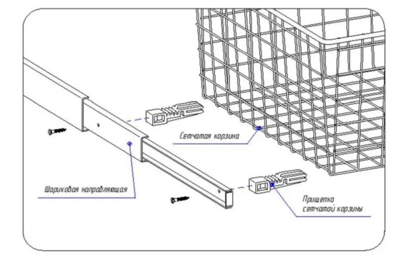 Для эксплуатации корзины в качестве выдвижной системы хранения, необходимо дополнительно приобрести: