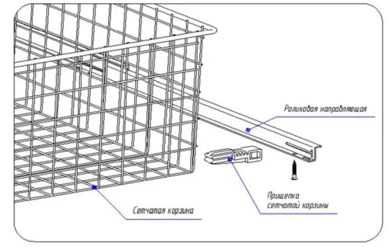 Комплект прищепок к сотовой корзине (для крепления к направляющим). Прищепки крепятся к направляющим при помощи саморезов и защелкиваются на проволочном каркасе корзины.