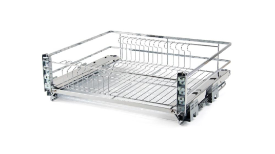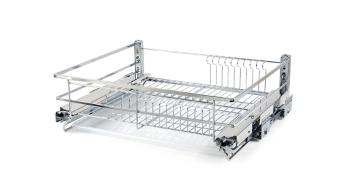МИРА KRS06 — выдвижная корзина-сушка в эксклюзивном дизайне с плоским прутком с амортизацией, предназначена для хранения разноплановой посуды в нижней базе мебельного гарнитура.