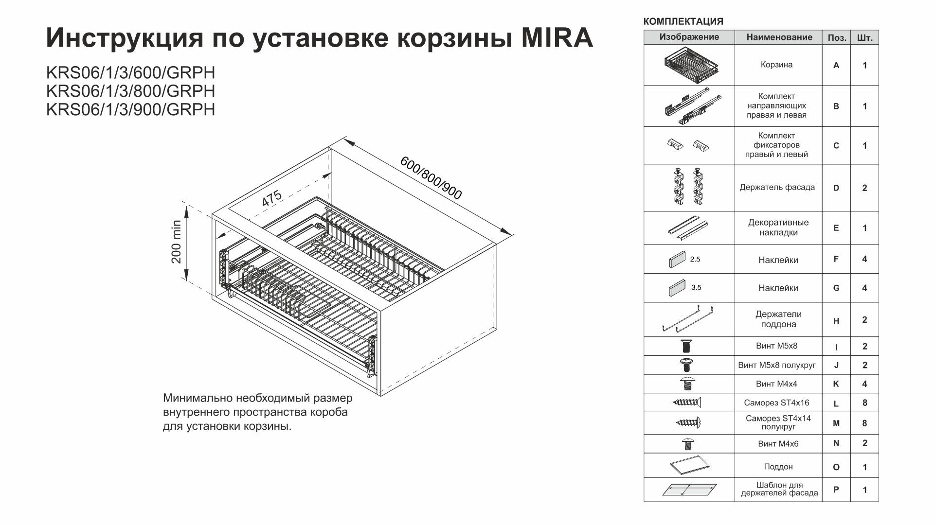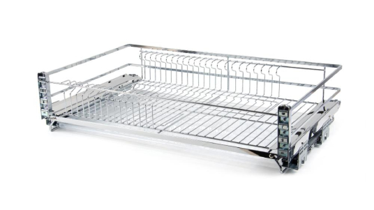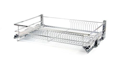 МИРА KRS06 — выдвижная корзина-сушка в эксклюзивном дизайне с плоским прутком с амортизацией, предназначена для хранения разноплановой посуды в нижней базе мебельного гарнитура.