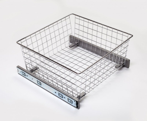 Получается прочная монолитная конструкция, которая позволяет защищать вещи от смазки на шариковых направляющих и придает эстетический вид корзин в шкафу.