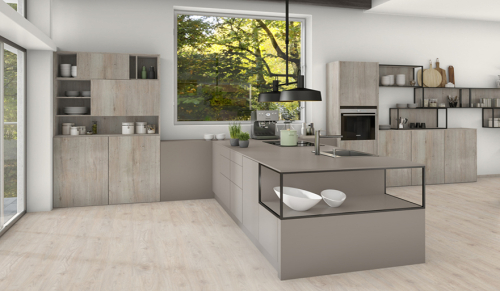 Кубанит серый – слегка тёплый оттенок серого, который однако может использоваться для достаточно нейтрального оформления. Этот декор гармонично сочетается с репродукциями древесины с долей серого цвета. Бархатистая на ощупь структура ST9 Мягкий матовый подчёркивает нейтральный характер декора.
