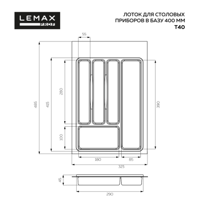 Универсальный обрезной лоток для столовых приборов в ящик корпуса 400мм. Насечки с трех сторон: по ширине разметка 310, 325мм, по глубине 424, 434,444, 454,464, 474, 485мм.