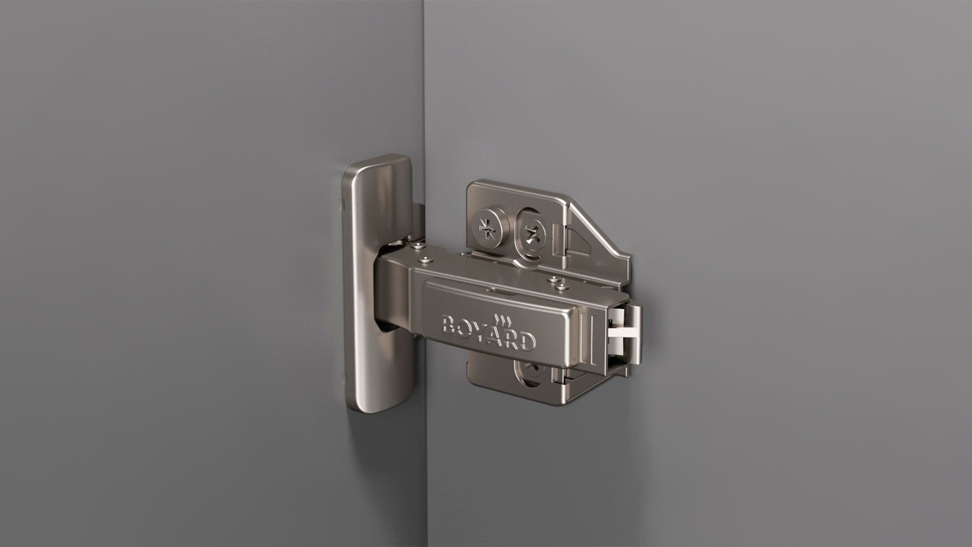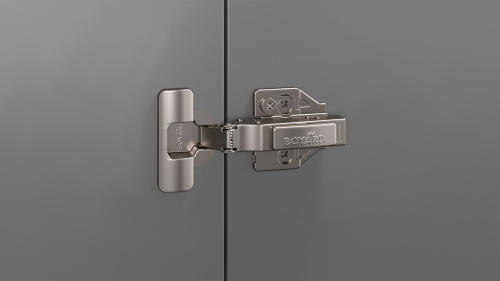 QuickClick — система простого монтажа петель на планки, дает возможность пристегнуть петлю на планку с 2 позиций, простой и быстрый способ крепления петель, особенно удобно для монтажа габаритных фасадов и монтажа силами одного специалиста, без помощников, а также в ограниченных или труднодоступных пространствах.