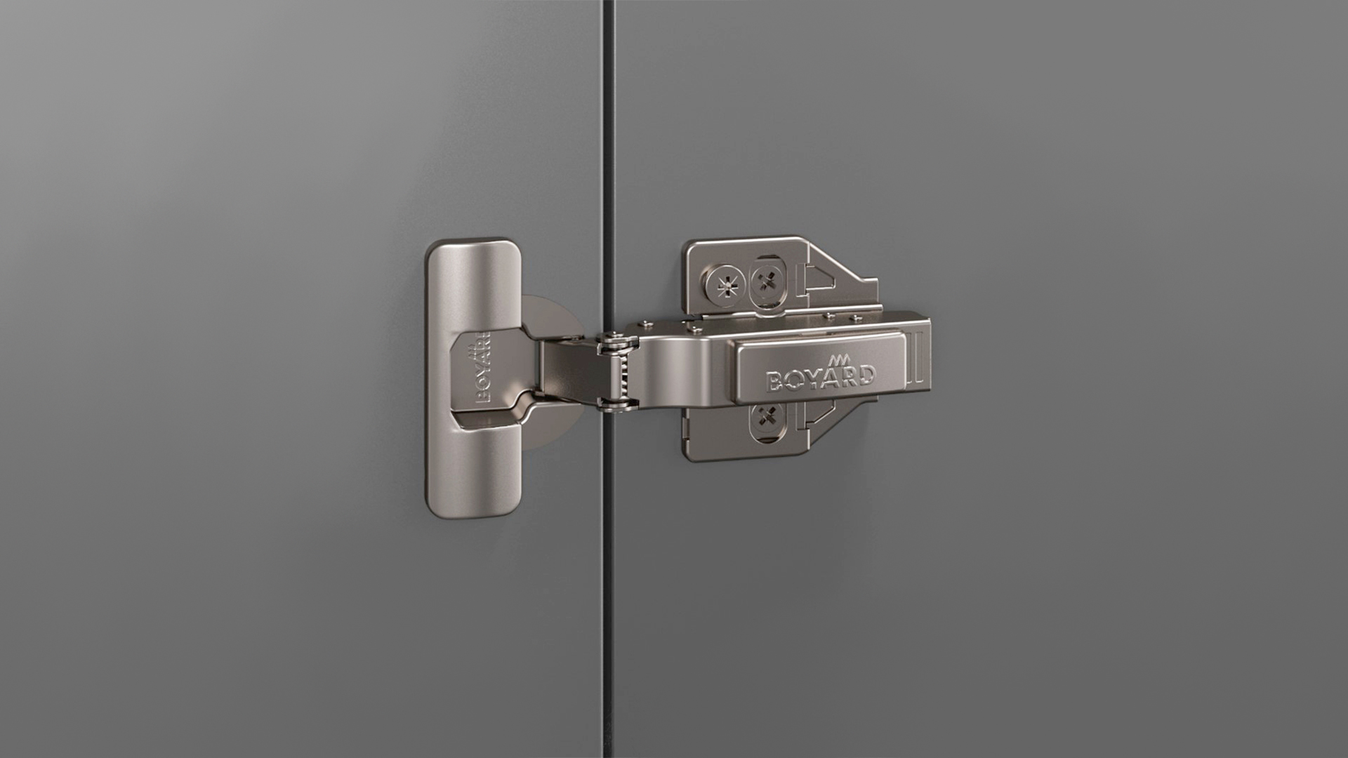 SYSTEM H801 — прогрессивная петля из линейки EVO с углом установки 90°, амортизацией и 3D-регулировкой для фасадов толщиной до 28 мм.