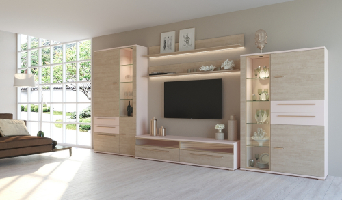 цветовая гамма — нежные оттенки молочного миндаля с деликатными переходами тонов, формирующими эффект благородной древесины;
