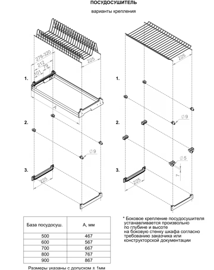 Все размеры под ЛДСП 16 мм.