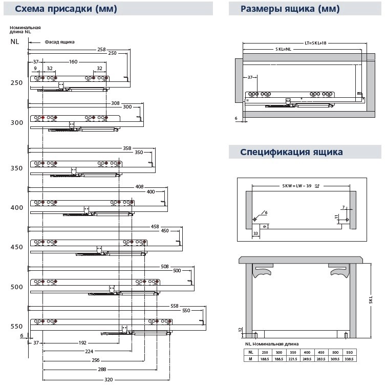 Направляющие скрытого монтажа создают минимальный внешний вид ящика - ничего лишнего. Установка задвижного типа обеспечивается фиксаторами которые нужно заказать отдельно. Так же, с помощью фиксаторов можно отрегулировать фасад ящика по вертикали на 2 мм. В комплекте левая и правая направляющая.