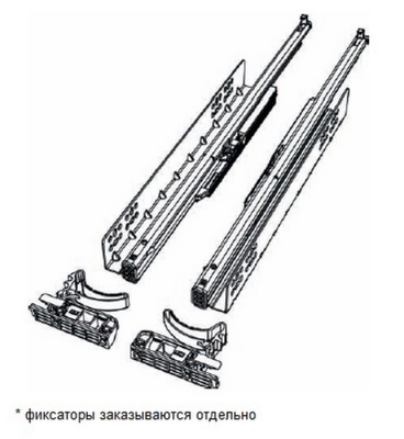 Направляющие скрытого монтажа создают минимальный внешний вид ящика - ничего лишнего. Установка задвижного типа обеспечивается фиксаторами которые нужно заказать отдельно. Так же, с помощью фиксаторов можно отрегулировать фасад ящика по вертикали на 2 мм. В комплекте левая и правая направляющая.