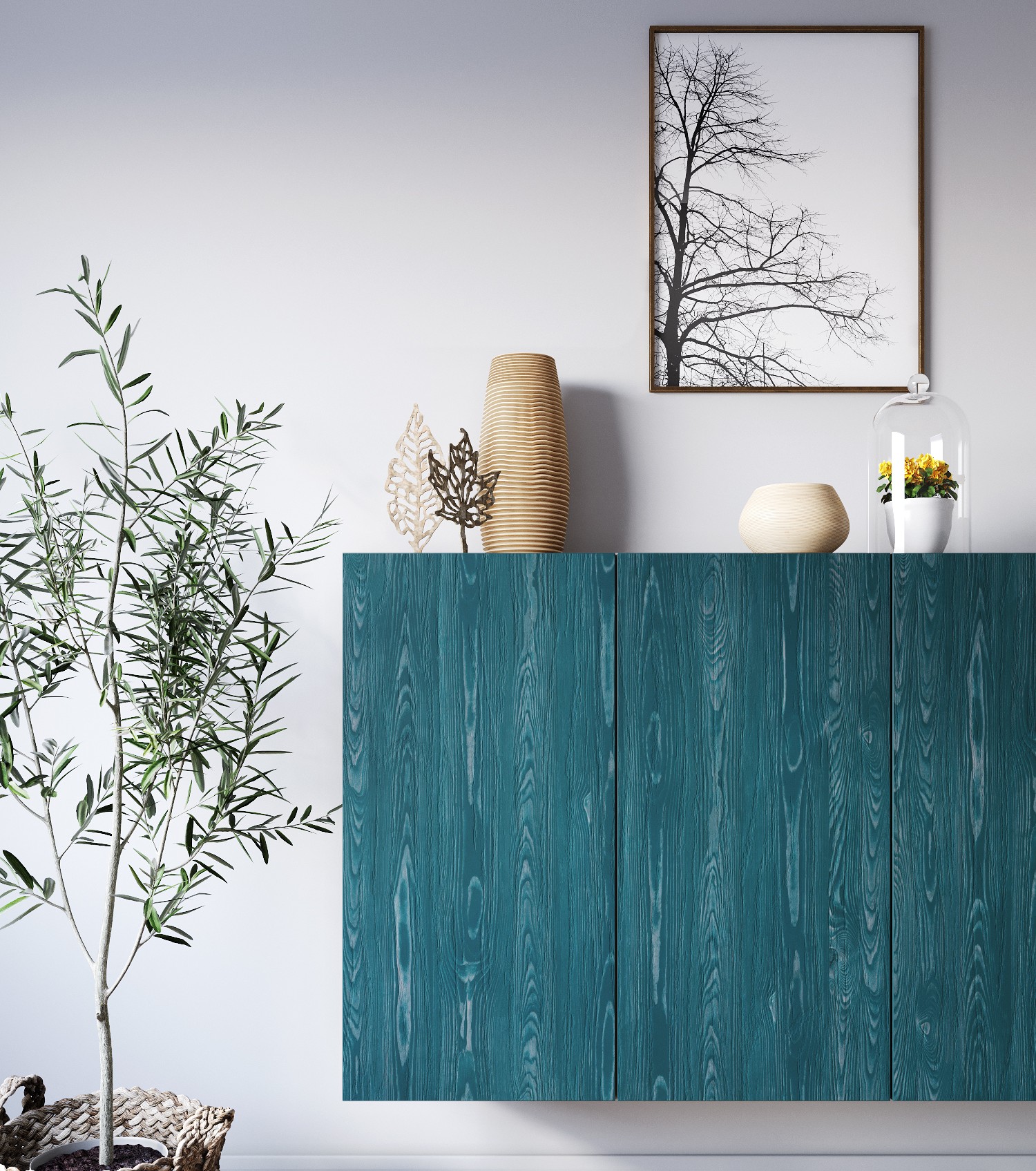 декоративное исполнение: «Океанская сосна‑8715» — выразительный древесный декор с оттенками морской волны, сочетающий спокойствие природного рисунка и динамику цветовых переходов;