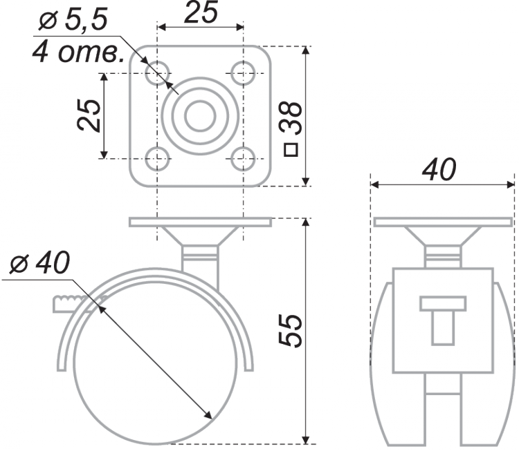 Диаметр колеса: 40 мм