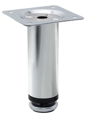 Металлическая хромированная ножка для мебели с возможностью регулировки.