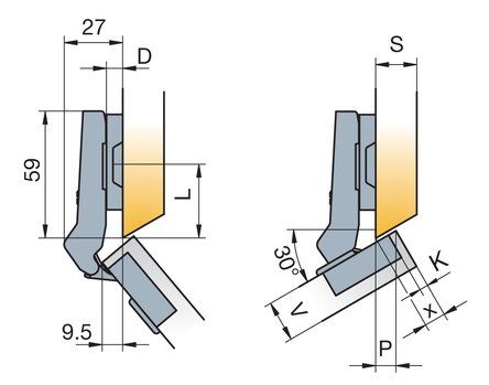 - глубина сверления под чашку петли 11,5 м.