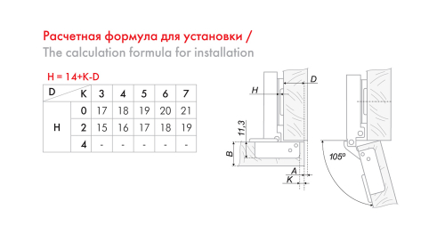 Петля предназначена для надежного крепления накладных, полунакладных и вкладных фасадов толщиной до 22 мм. H306 является двухходовой, с возможностью остановки фасада в полуоткрытом положении.