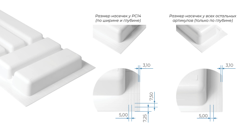 C одной стороны конструкции PC13 выступает плоская часть, а с другой специальный П-образный паз, который обеспечивает аккуратное и надёжное соединение блока с другими поддонами линейки: PC10, PC11, PC12, PC14 (обязательный элемент для создания любого комплекта BLӦKI), PC15.