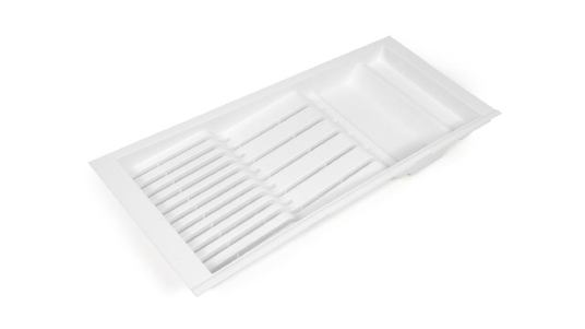 Поддон представлен в белом и стильном графитовом решениях. Легко чистится от загрязнений, не деформируется от высоких температур в посудомоечных машинах.
