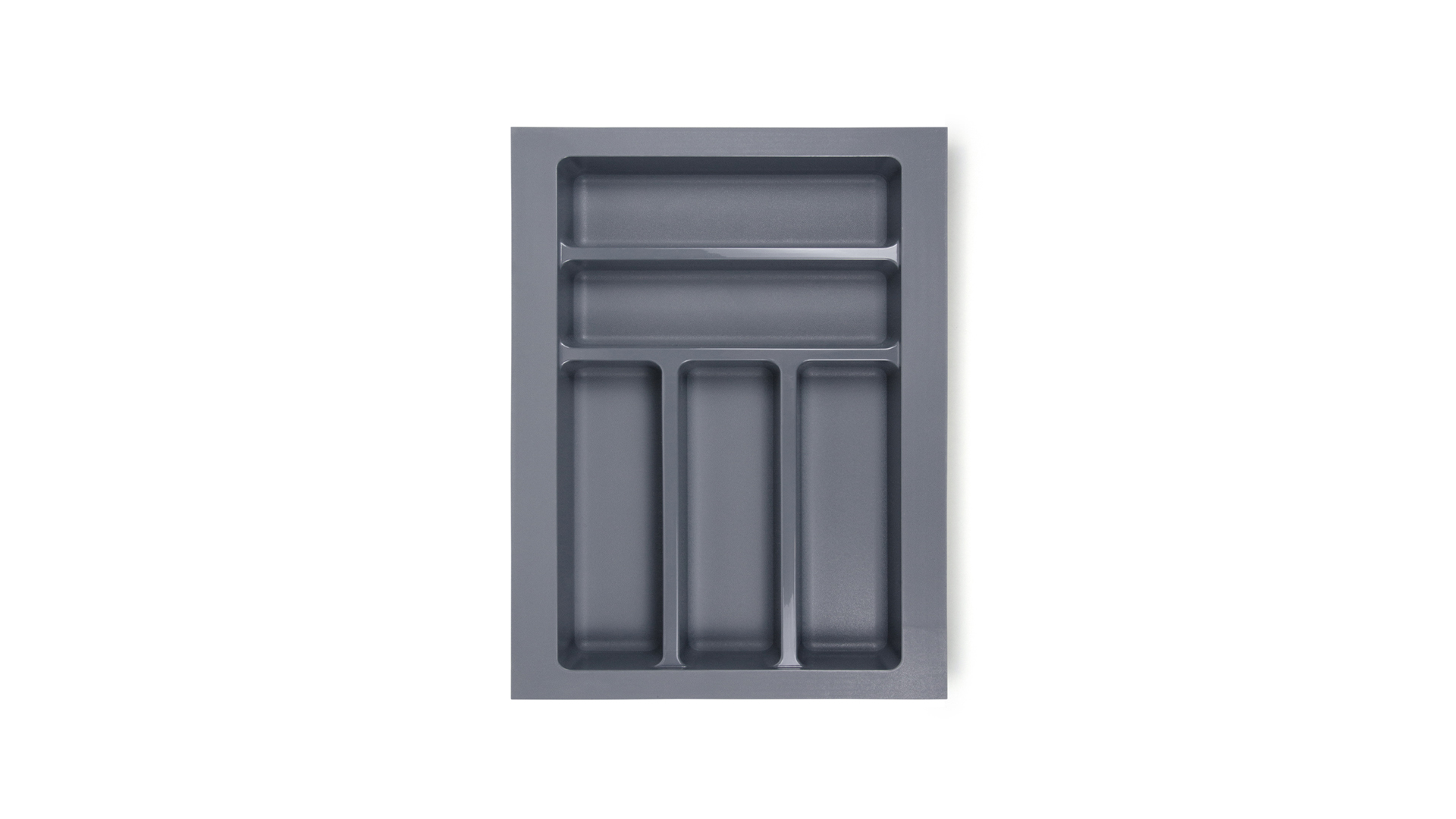 PC14 — многосекционный поддон из экологичного полипропилена, необходим для хранения столовых приборов. Является обязательным образующим элементом для формирования любой комбинации поддонов линейки BLӦKI для выдвижных мебельных ящиков глубиной 450 мм и шириной от 500 мм.