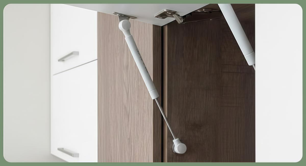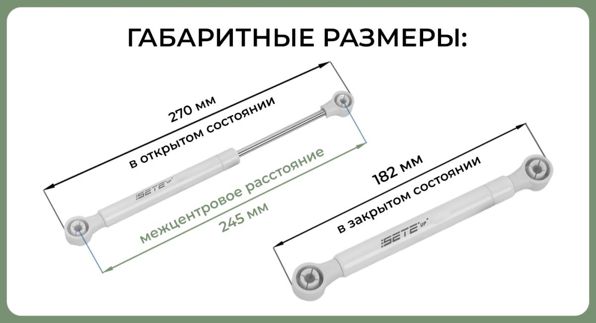 Газовый подъёмник SETUP, 100 N, белый (GL‑100N‑10) — мебельный механизм для фасадов, открывающихся вверх.