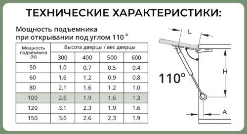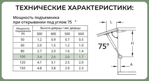 • усилие: 100 N (подходит для фасадов весом до 10 кг);