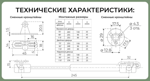 • тип монтажа: универсальный (слева, справа или с обеих сторон);