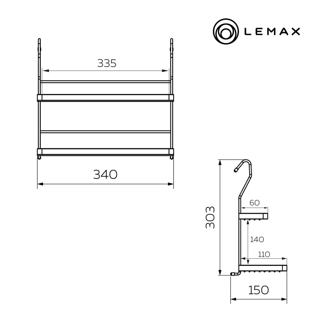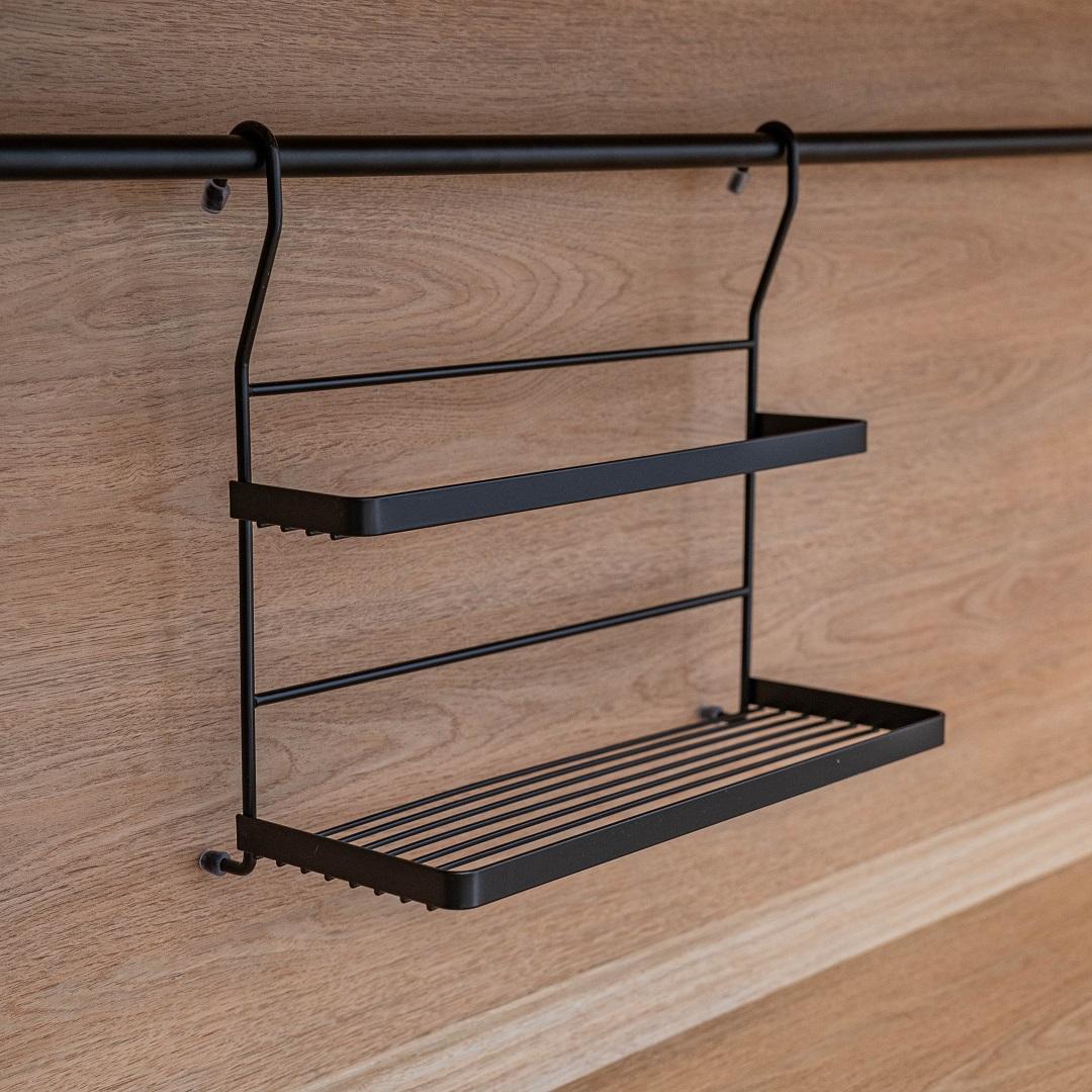 Полка двухъярусная «mix» YJ‑G212‑BL — практичный аксессуар для рейлинговой системы.