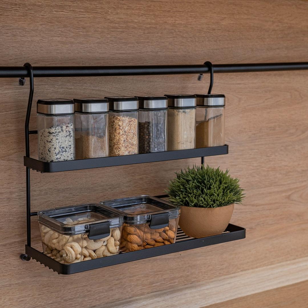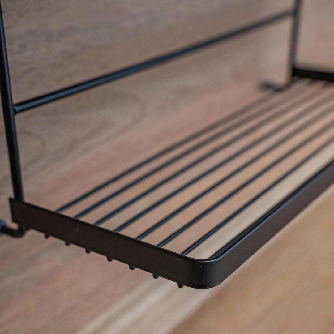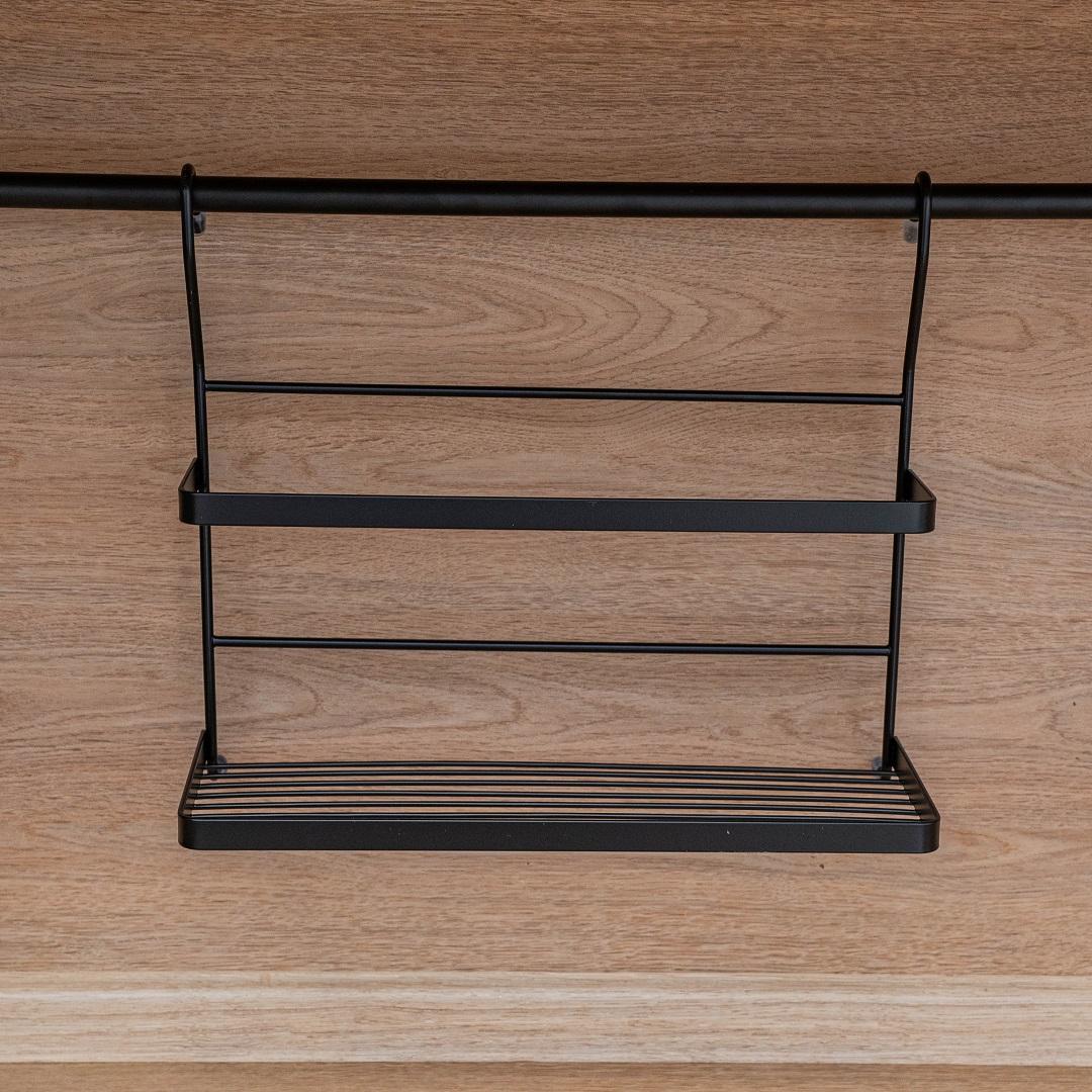 Полка подойдёт для организации пространства на кухне или в ванной комнате: на ярусах удобно разместить кухонные принадлежности, косметику, аксессуары и другие мелочи. Модель сочетает функциональность и современный дизайн, помогая поддерживать порядок без потери эстетики интерьера.