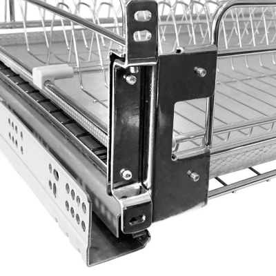 В качестве выдвижной системы для этой модели корзины-сушки использованы шариковые направляющие скрытого монтажа с доводчиком. Этот современный механизм выдвижения гарантирует легкое и бесшумное скольжение корзины, а наличие доводчика обеспечивает плавный и мягкий ход корзины при закрывании.