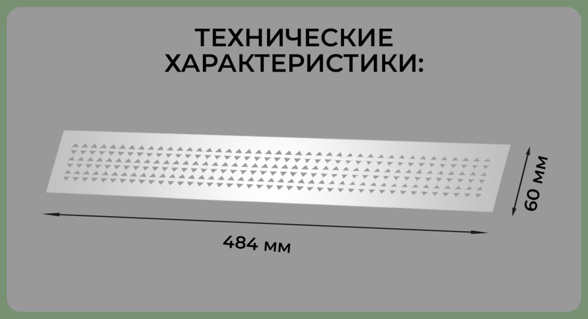 • Размеры: 484 × 60 мм (длина × ширина) — соответствуют стандартным проёмам, что упрощает монтаж без дополнительной подгонки.