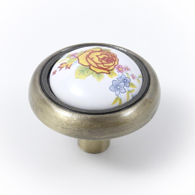 Ручка-кнопка, RC052AB.4, старинная латунь, роза желтая/50