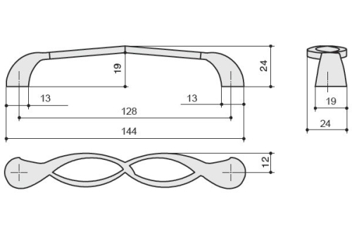 Ручка-скоба 128мм, отделка серебро античное, 9.1335.0128.17N