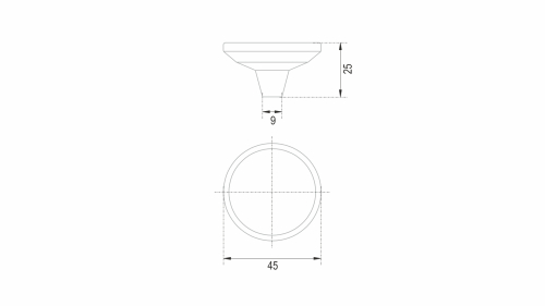 Ручка для мебели и дизайна диаметром 45 мм может использоваться самостоятельно на фасадах любой ширины.