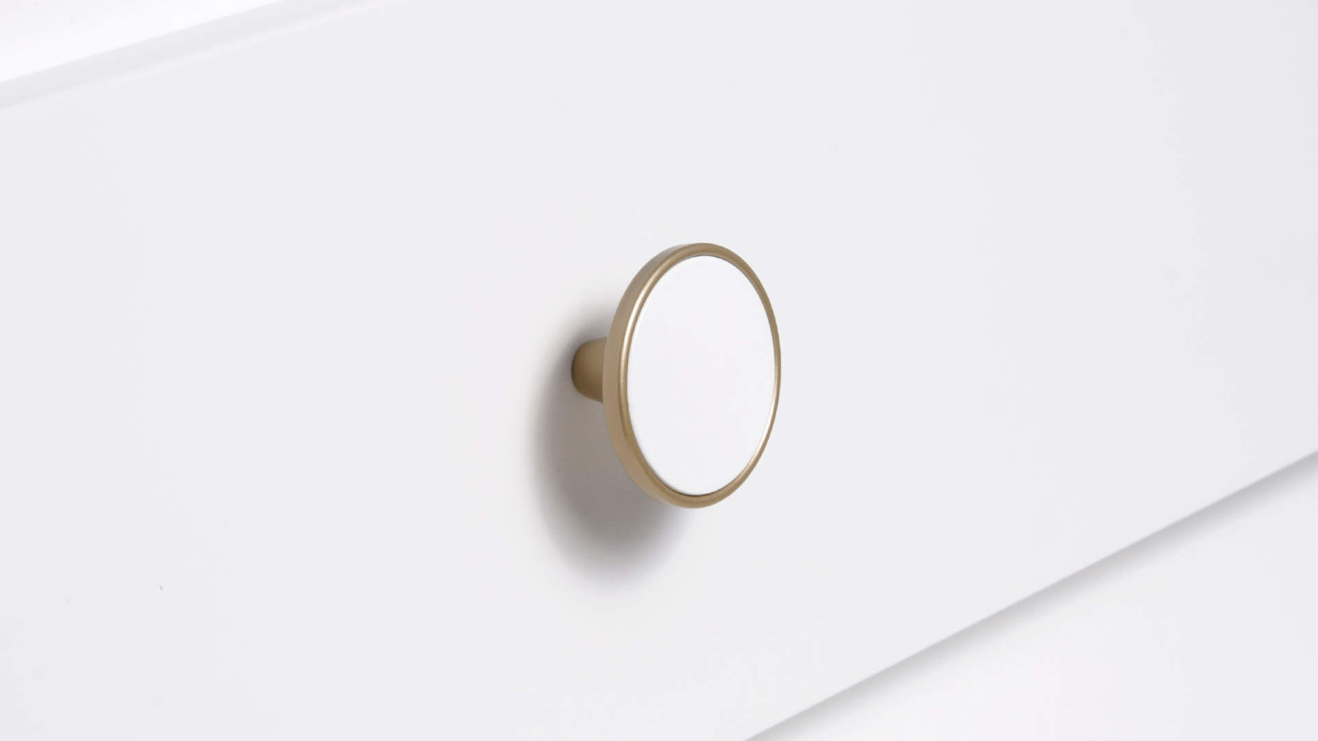 Ручка для мебели и дизайна диаметром 45 мм может использоваться самостоятельно на фасадах любой ширины.