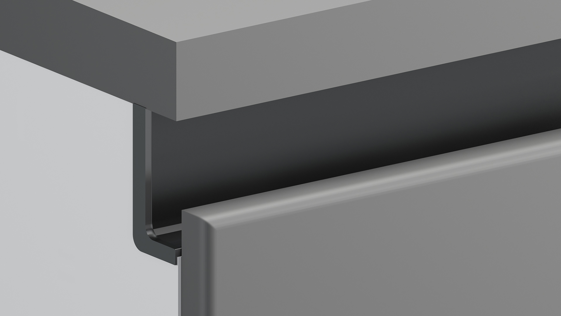 RP051 — L-образный профиль GOLA BALANCE, размещаемый в нижней базе мебельного гарнитура сразу под столешницей. Полезная длина GOLA BALANCE RP051 составляет 4100 мм. Для стыка ручек-профилей GOLA BALANCE RP051 в углах нижней базы мебельного гарнитура рекомендуется использовать металлические уголки-держатели: внешний уголок RZ051.02 и внутренний уголок RZ051.03.