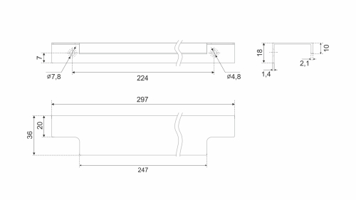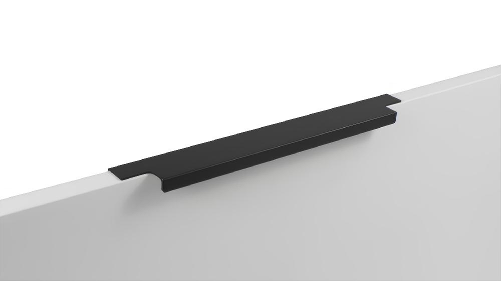 Ручка имеет богатое разнообразие длин. В зависимости от длины модель можно разместить двумя способами — «в размер» фасада и по центру широких фасадов (как большой «язычок»).